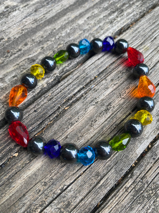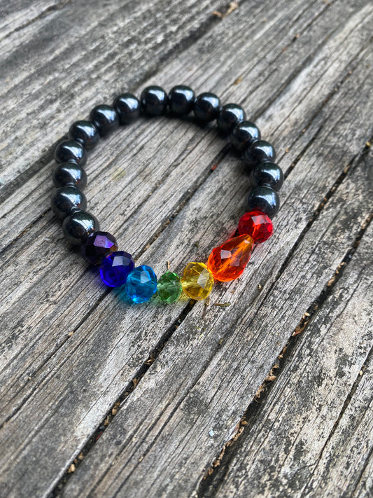 Hematite Balanced Rainbow Bracelet