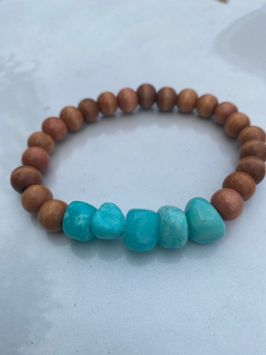 Wood and Aqua Bracelet